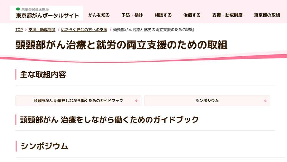 ●頭頸部がん治療と就労の両立支援のための取組(東京都がんポータルサイト)