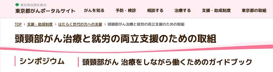 『頭頸部がん 治療しながら働くためのガイドブック』が完成し、 東京都のホームページに公開されました。